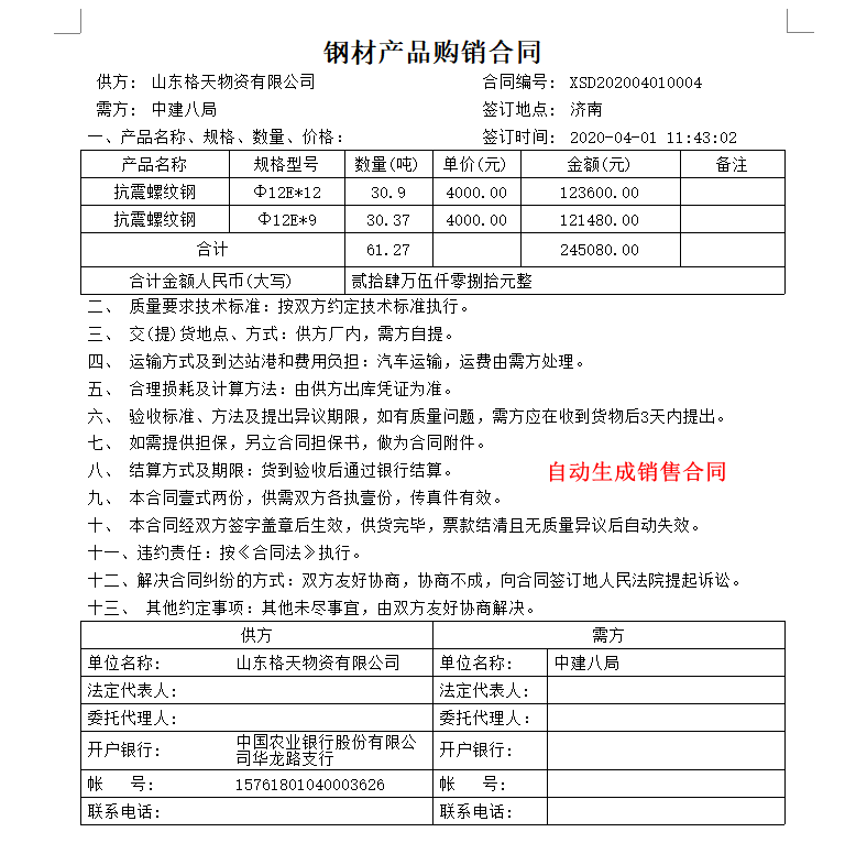订单管理:向钢厂打款锁货,提货后自动冲减锁价款余额,可以分批提货;