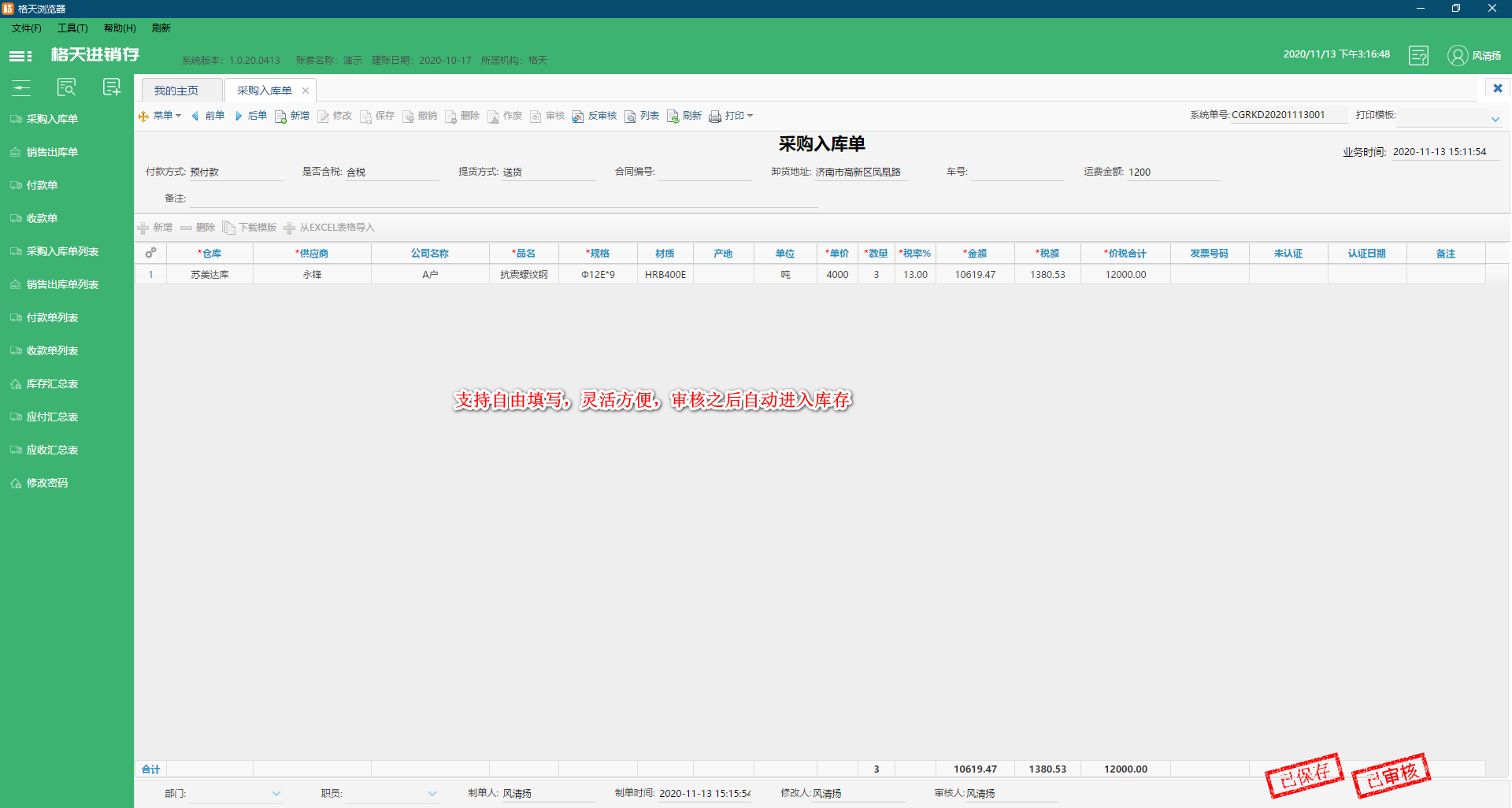 表格导入:对于明细行数较多的单据,可以通过表格一键导入,方便快捷;